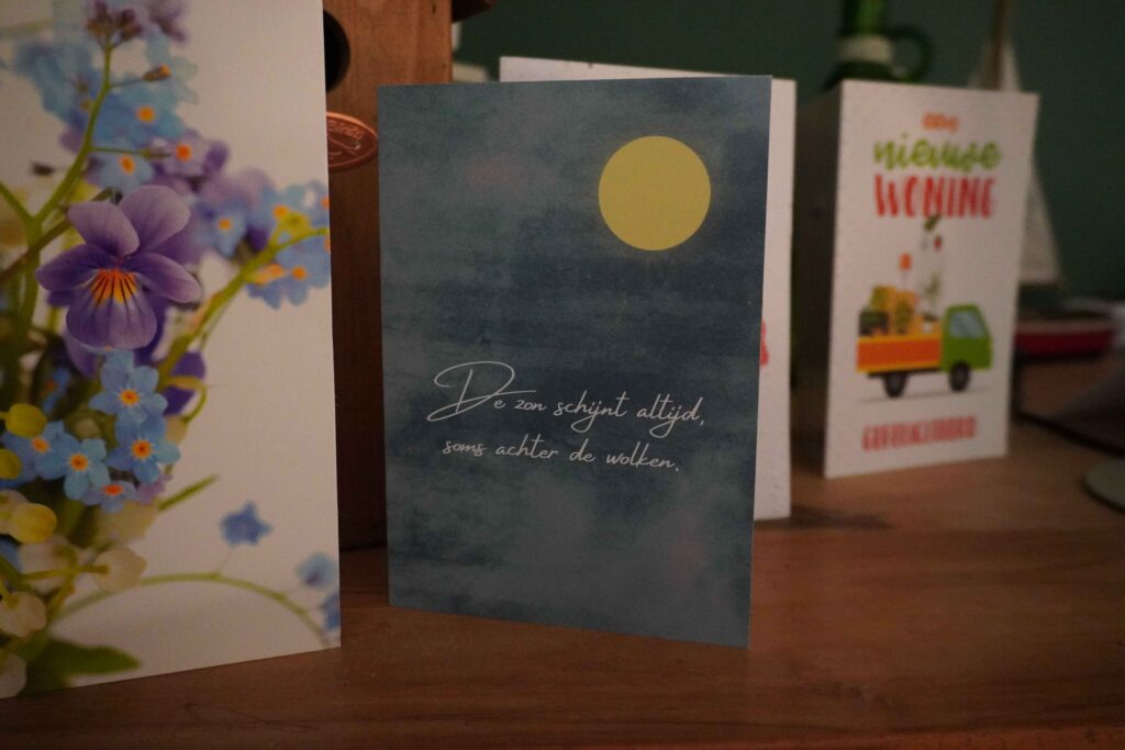 Kleine woorden brengen grote glimlachen. Een fysiek kaartje is tastbaar, warm en een moment van persoonlijke aandacht; van het moment dat je het uit de brievenbus haalt tot het op tafel ligt.